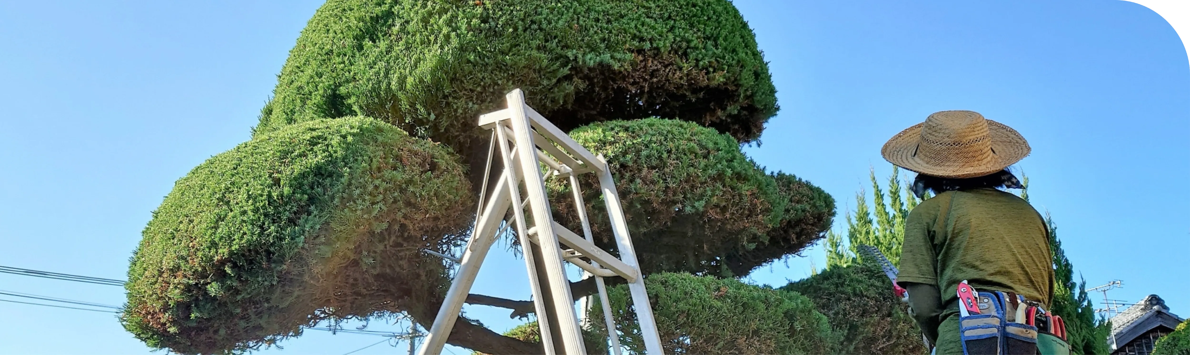 剪定・刈り込み・伐採・抜根・草刈り・芝張り・防虫対策といった日常管理から、造園工事・外構工事まで幅広く対応します。
