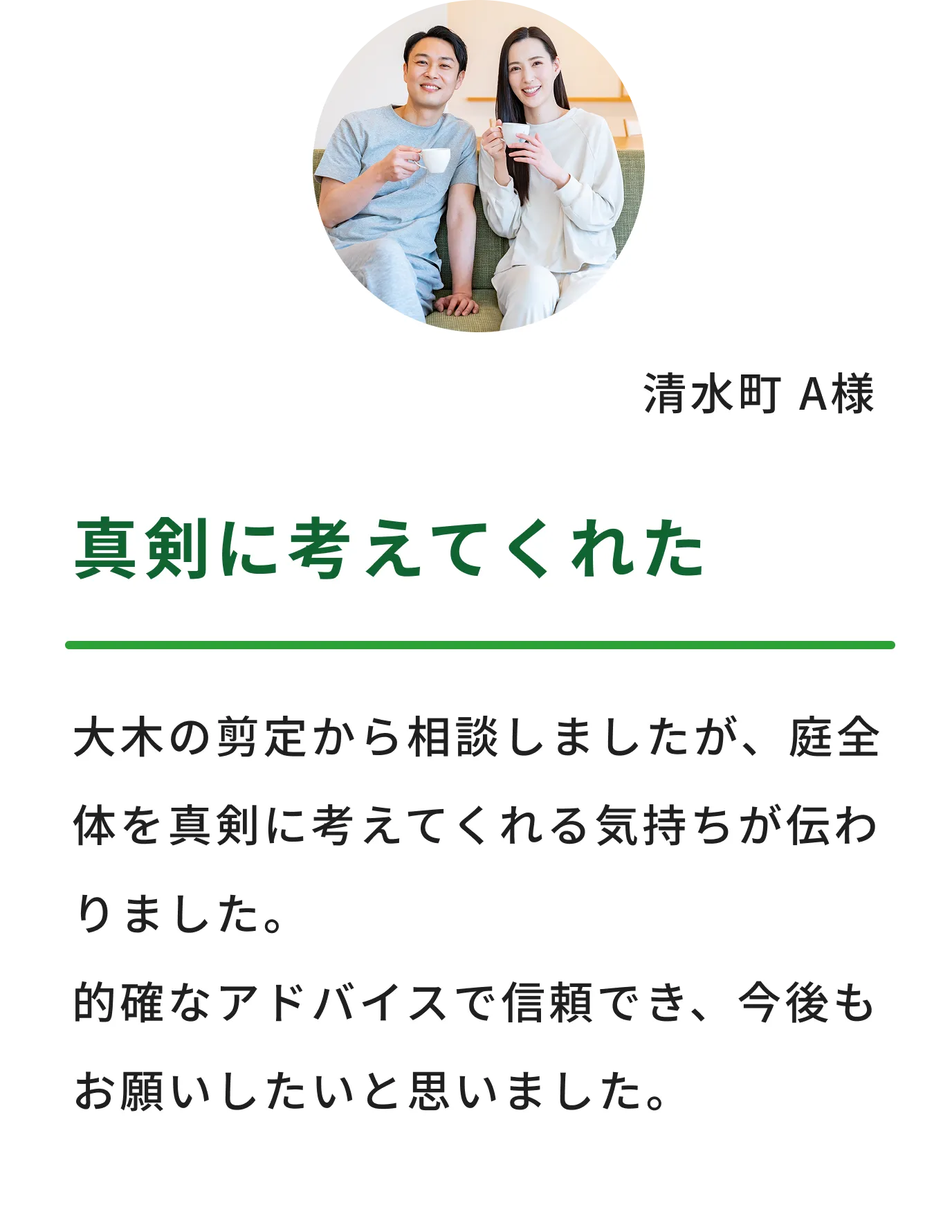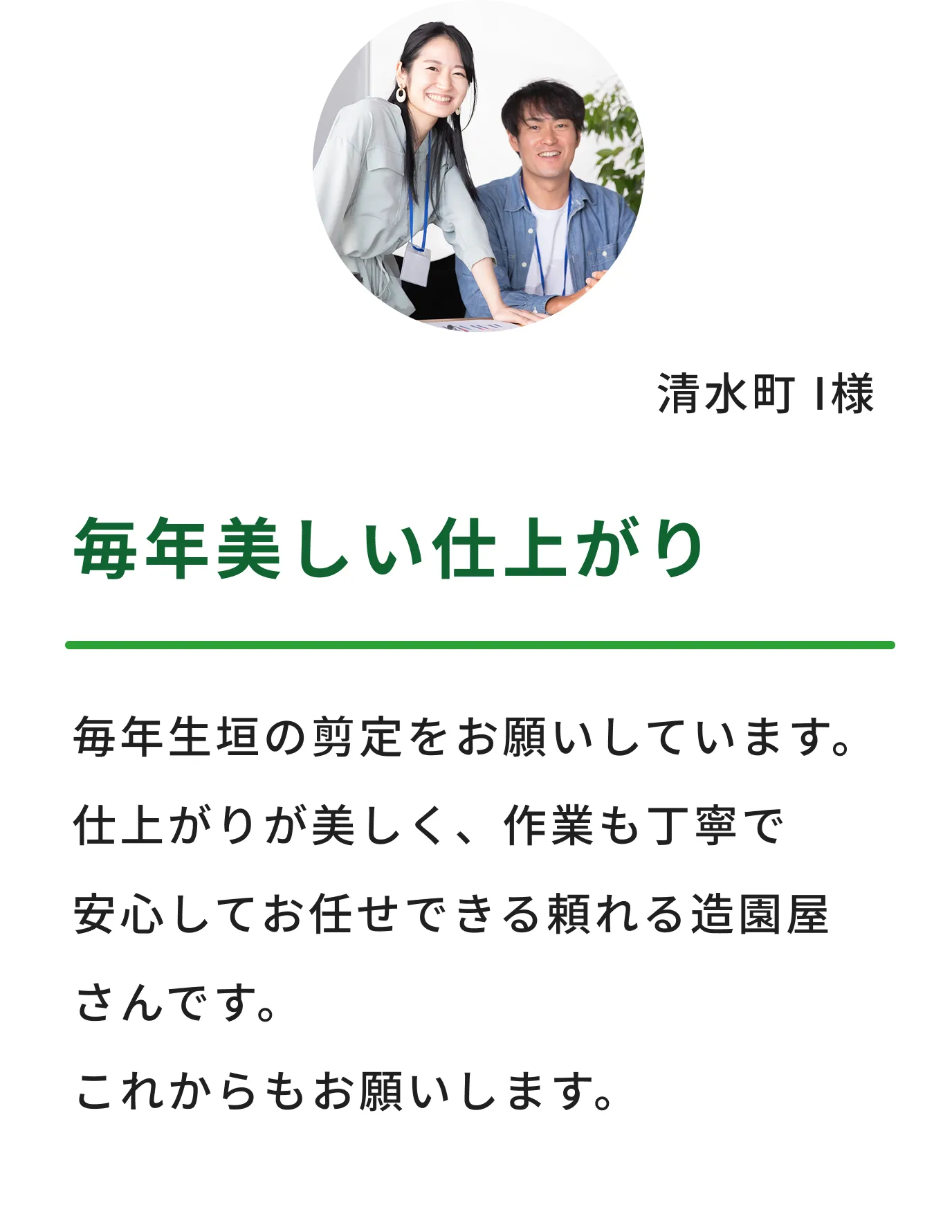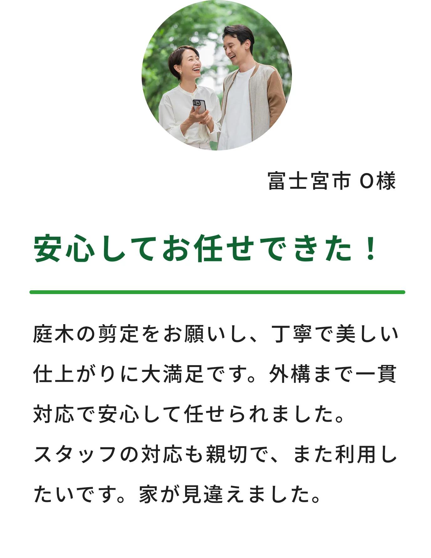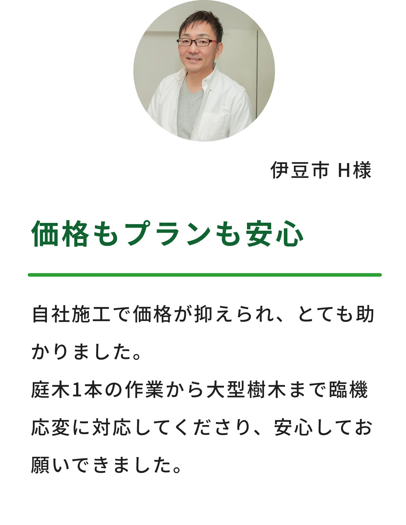 熟練の庭師が自社施工で安心安全を低価格で提供します。